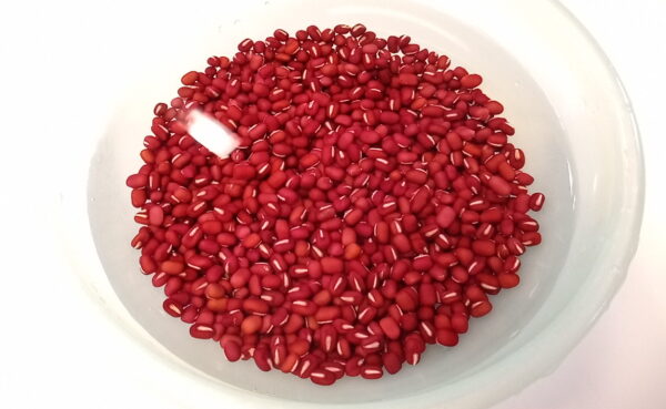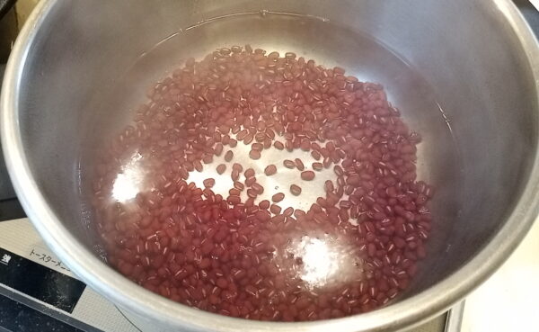 - 鍋にお湯を沸かしている間に、小豆をよく洗います。水に浮く豆は取り除いてください。洗った小豆はザルにあげておきます。