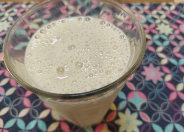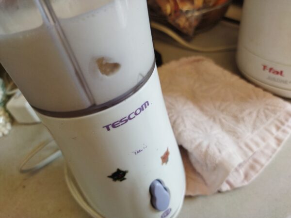 - 凍ったバナナが牛乳と均一になるまで、しっかり混ぜます。バナナのかたまりがなくなったら完成です。