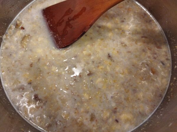4. 再度火にかけて好みの固さになるまでトロ火で煮詰めます。焦げやすいので火加減に注意しながら煮ます。洋酒を入れるならこのタイミングで。