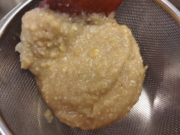 5. 好みの固さまで煮詰めたら裏ごしして完成です。熱いうちが作業しやすいです。