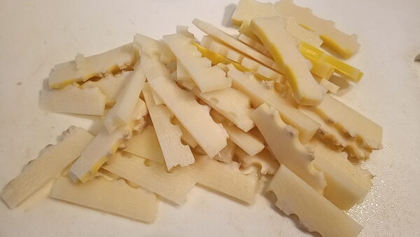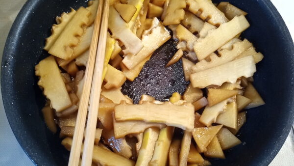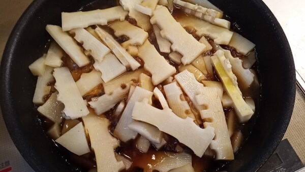 - タケノコを短冊切りにします。