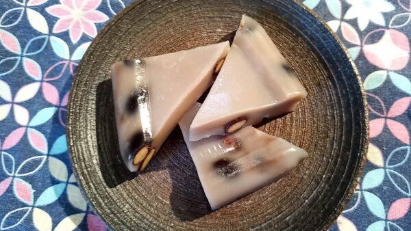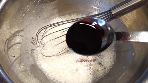 - 粉の入ったボールに水と黒豆の煮汁を入れて、よく混ぜます。