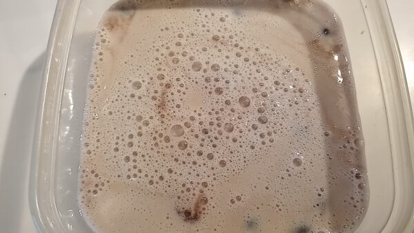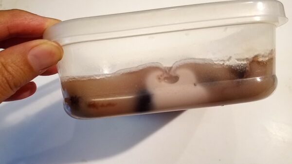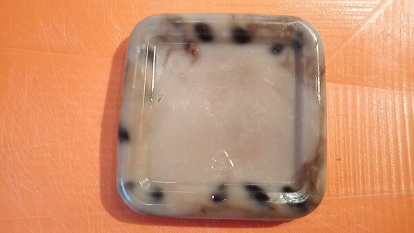 - 白いところが残っていたら30秒ずつ追加で加熱してください。(写真は 3分加熱したもの)だいたい4分も加熱すると白い部分はなくなります。