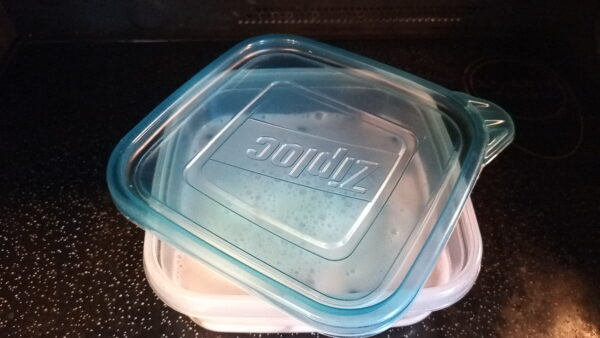 - フタをずらして置くか、ラップをふんわりかけて、600Wで3分加熱します。