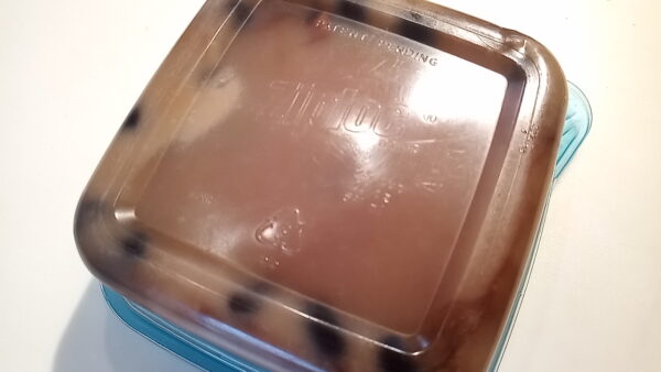 - 荒熱がとれたら、フタをして冷蔵庫で1時間以上ねかせてください。しっかり冷えると容器から簡単にはずれます。