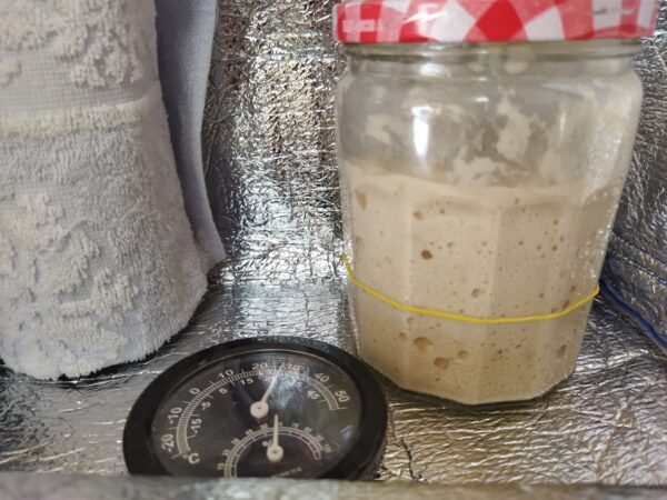 気温が低くて温度が足りないときは、ペットボトルにお湯を入れて、一緒に保冷バッグにいれます。25℃~30℃をキープするようにします。