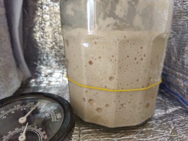 9. パン作りで種を使ったら、使った分の半量の強力粉と粉と同量の酵母液と足して、常温で2倍になるまで放置してから冷蔵庫に戻します。掛け継ぎしない種は1週間くらいで使い切るようにします。