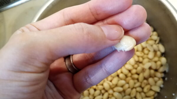 - 茹で上がった豆は親指と小指で挟んで、簡単につぶせるくらいの固さが理想です。