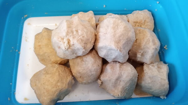 - しっかり混ざったら、こぶし大の団子に握って、空気を抜きます。