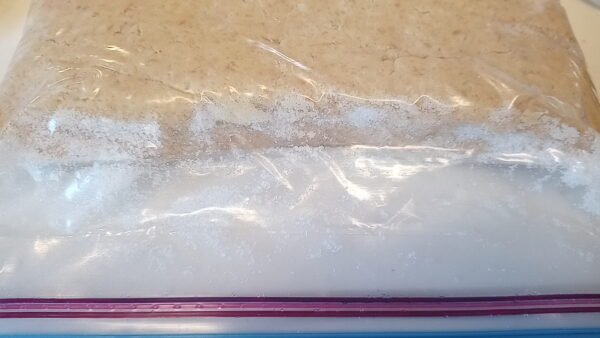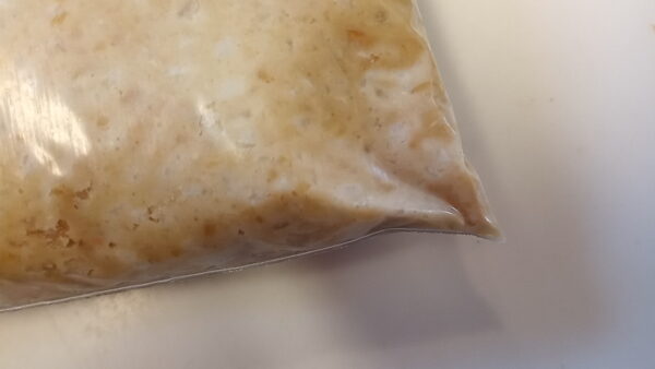 - アルコール消毒した保存袋に、空気が入らないように角からきっちり詰めていきます。