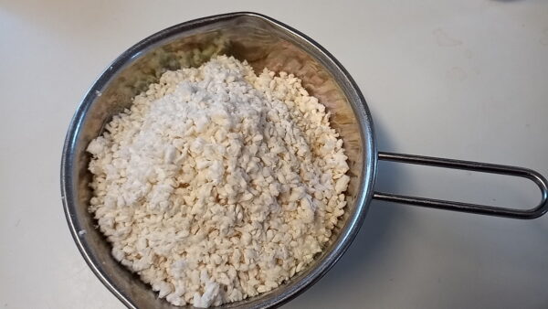- 乾燥麹はもみほぐしてバラバラにしておきます。