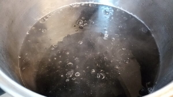 3. 沸騰したら、洗っておいた豆を入れて、火を止めます。ふたをして、そのまま一晩(6時間くらい)放置します。