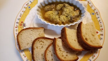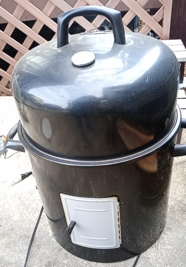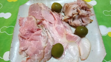 今回の燻製は熟成肉です。前回の燻製のときに一緒に仕込んで塩漬けにした豚バラ肉を冷蔵庫で熟成していました。キッチンペーパーで包んでさらにラップで包んで冷蔵庫で寝かせる事3週間。水分が抜けて乳酸発酵が進んでいます。生ハムの匂いです。このままだと...